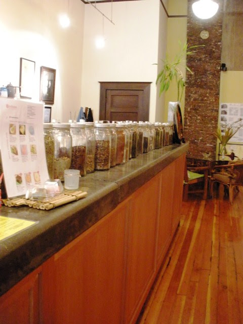 My second drink was an iced Coconut Pouchong (Oolong). The aroma of the leaves was divine though much lighter in the cup. The coconut flavor was strong in the mouth, but not unpleasantly so and there was also a light floral note. I suspect this would do better paired with a light, flaky pastry to counteract the oil-like aftertaste which may have been a result of the coconut flavoring. This would be worth a second try served hot during the cool days of autumn.