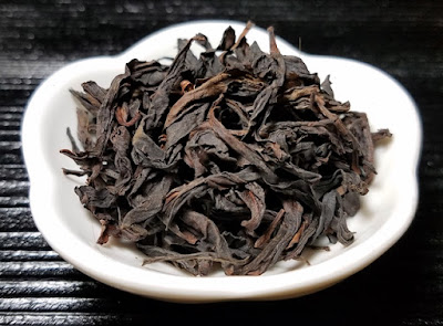 This is a delicious oolong, which should come as no surprise since I've never met a Rou Gui I didn't like. A 3-minute initial steep worked well for the purposes of this western-style tasting session with longer subsequent steepings bringing out more flavor. Meanwhile, a 30 second initial steeping works very well for gongfucha preparation, followed by increased time with each new steep. On a more personal tasting note, something in the flavor reminded me of the baked persimmons that were served as dessert at a restaurant in Kyoto, a happy memory.